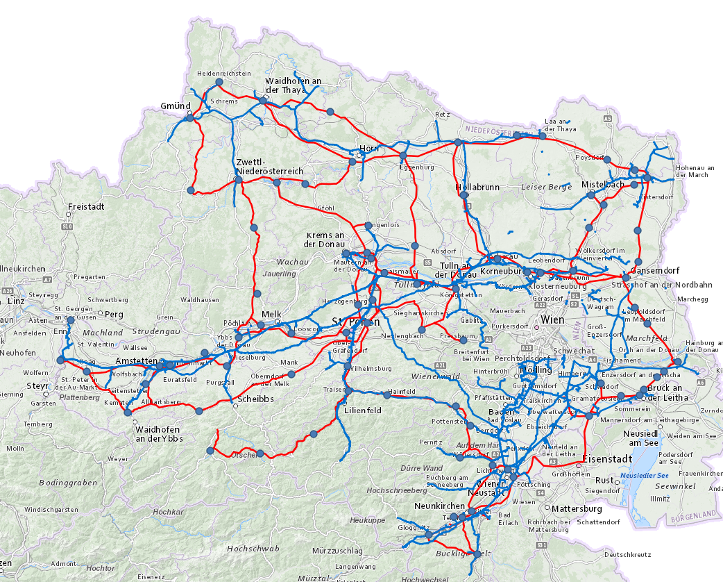 Darstellungsdienst für Hochspannungsleitungen, Hochdruck und Umspannwerke im Versorgungsgebiet der Netz Niederösterreich GmbH
